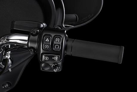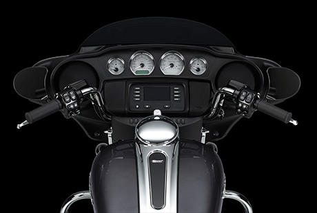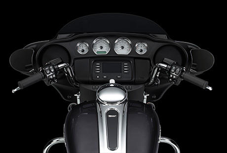 Es ist schwer, die Fahrt zu genießen und sich auf den Verkehr zu konzentrieren, wenn die Schalter am Lenker umständlich zu bedienen sind. Deshalb hat Harley-Davidson den Lenkerarmaturen dieser neuen Touring Maschinen genauso viel Aufmerksamkeit geschenkt, wie dem Rest der Bikes. Sie sind nun ergonomischer gestaltet und exakt so positioniert und ausgerichtet, dass Sie perfekt unter Ihrem Daumen liegen. Harley-Davidson hat eine leicht aktivierbare Geschwindigkeitsregelanlage, griffgünstige Bedienelemente für die Infotainment Funktionen und einen leicht greifbaren Trigger zur Aktivierung der Displayanzeigen angebracht. Zudem wird jetzt jede Tastenaktivierung durch ein vertrauenseinflößendes, fühlbares Klicken bestätigt. Auch der Zündschalter wurde optimiert. Und die elektrische Anlage ist bereits auf das einfache Customizing mit weiterem elektrischen Parts and Accessories vorbereitet.