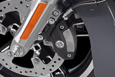 Zweifellos gibt es auf vielen Touren Augenblicke, in denen Sie blitzschnell bremsen müssen. Und diese Momente können Sie weder auswählen, noch treten sie immer auf ebenen, geraden, trockenen und perfekt asphaltierten Strecken auf. Deshalb sind die Touring-Modelle mit dem neuen Reflex Antiblockiersystem (ABS) mit dynamischen, elektronisch verlinkten Bremsen ausgestattet, die die Bremskräfte optimal auf das Vorder- und Hinterrad verteilen. Mit ABS werden ein blockiertes Vorderrad oder ein rutschendes Hinterrad nun in die Geschichte verbannt. Und die Vorder- und Hinterbremsen sind elektronisch miteinander verlinkt, um bei sämtlichen Straßenbedingungen für jeden Reifen stets die korrekte Bremskraft bereitzustellen. Unabhängig von Ihrer Erfahrung werden Sie damit zum besseren Fahrer.