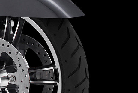 Dieser 180er Hinterreifen soll nicht nur Ihren Heckfender ausfüllen – er hat’s in sich. Die härtere Gummimischung in der Mitte der Lauffläche bürgt für eine hohe Laufleistung, während die weichere Mischung an den Flanken in Kurven zuverlässig für Grip sorgt. Der perfekte Reifen, um Meile für Meile die Agilität dieses Bikes unter Beweis zu stellen. Und das Lächeln, das Ihnen die Maschine in jeder Kurve ins Gesicht zaubert, hält bis an Ihr Ziel an – garantiert!