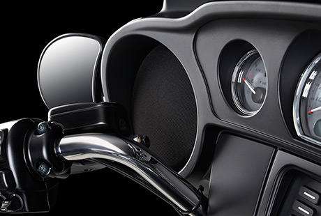 Die neue Innenverkleidung der Street Glide schmeichelt Ihrem Auge. Das Info-Display ist größer und die Anzeigeinstrumente kommen in neuem Finish. Tachometer, Drehzahlmesser, Umgebungstemperatur- und Kraftstoffanzeige sind jetzt größer und verfügen über größere Ziffern, die sich vor dem klassisch schwarzen Hintergrund noch besser ablesen lassen. Der Gear Indicator zeigt Ihnen an, welchen der sechs Gänge Sie gerade eingelegt haben, und die Display-Anzeigen werden per Fingerdruck über einen neuen Trigger gewechselt. Ein kurzer Blick genügt und Sie sind über alles im Bilde.