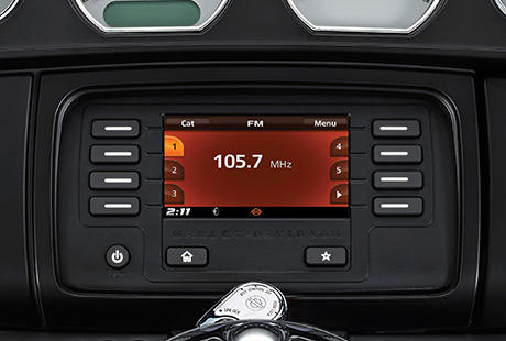 So mancher Biker fragte, warum ein Infotainment-System für Motorräder nicht mindestens so viel leisten kann, wie ein entsprechendes Auto-System. Stimmt, dachte Harley-Davidson sich, und hat im Zuge des Projekts RUSHMORE ein ultimatives System fürs Bike entwickelt. Noch besserer Klang – ganz dicht am Original. Ein großer farbiger Touch-Screen. Bedienelemente, die exakt dort angeordnet sind, wo Sie sie intuitiv erwarten und die Sie benutzen können, ohne die Hände vom Lenker zu nehmen. Musik, Telefon und GPS aktiviert durch Sprachbefehle. Sie werden Ihren Augen nicht trauen. Und Ihren Ohren.