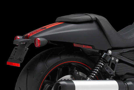 Mit diesem coolen Heck haben die Harley-Davidson Designer der Night Rod Special einen verschärften Dragster-Look verliehen. Der radikal kurze, sich nach hinten verjüngende Fender setzt den breiten Hinterreifen markant in Szene. Ein schlanker, mittiger Kennzeichenhalter sowie ein bündig integriertes LED-Rücklicht vervollständigen das zeitlose Streamline-Design.