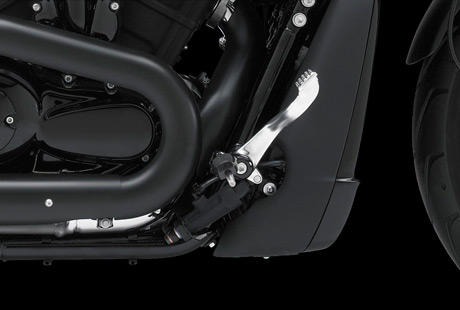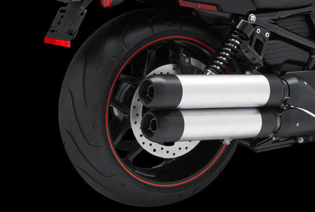 Die Night Rod Special zeigt, wie schön ein zweiflutiger Hochleistungsauspuff aussehen kann. Die in gebürstetem Finish ausgeführte Doppelrohr-Auspuffanlage mit den breiten Endschalldämpfern, schwarzen Endkappen und schwarzem Hitzeschild lässt bei jedem Gasstoß klare Rückschlüsse auf die Kraft der Maschine zu und unterstreicht zugleich den ebenso ästhetischen wie bulligen Look des Bikes.