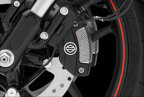Brembo Hochleistungs-Doppelscheibenbremsen vorn sorgen für ideal dosierbare Bremskraft, die Vertrauen schafft und Ihnen die perfekte Kontrolle über das Bike gibt. Das Antiblockiersystem (ABS) verringert die Gefahr blockierender Räder bei plötzlichen Bremsvorgängen. Und da wir den Drehzahlgeber versteckt haben, sieht das Bike so clean und elegant aus wie eh und je. Performance ohne Abstriche beim Stil – genau darum geht es bei der Motor Company.