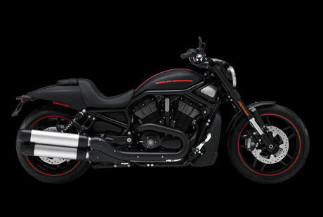 Die Night Rod Special im pechschwarzen, düsteren Look ist von vorn bis hinten aggressiv gestylt. Motor, Räder, Gabeln, Gabelbrücken, Schwinge – alles ist in Schwarz gehalten und verströmt eine kompromisslose Dragstrip-Atmosphäre.