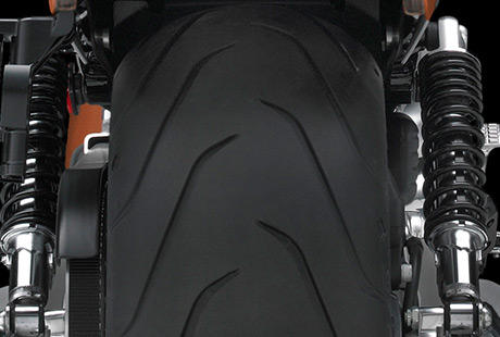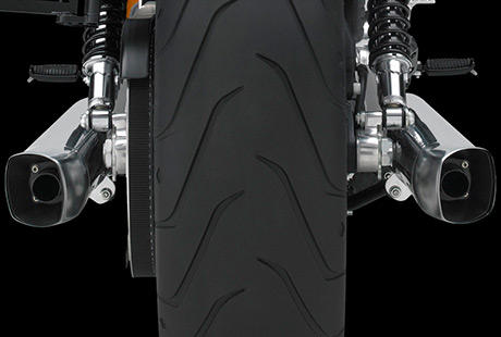 Werfen Sie einen Blick auf den ultrabreiten 240er Hinterreifen. Er sieht nicht nur stark aus, er sorgt auch für jede Menge Grip, wenn’s drauf ankommt. Der Hinterreifen der V-Rod Muscle bringt jedes PS und die ganze explosive Power des Bikes voll auf die Straße und unterstreicht den minimalistischen Dragster-Look Ihrer Maschine.