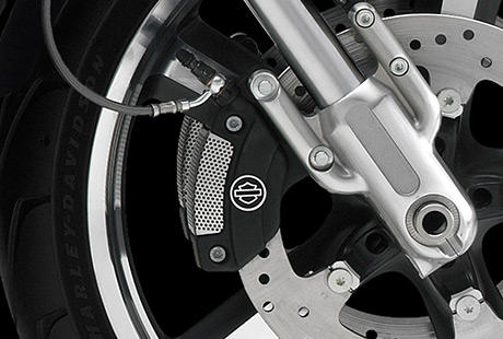 Brembo Hochleistungs-Doppelscheibenbremsen vorn sorgen für ideal dosierbare Bremskraft, die Vertrauen schafft und Ihnen die perfekte Kontrolle über das Bike gibt. Das Antiblockiersystem (ABS) verringert die Gefahr blockierender Räder bei plötzlichen Bremsvorgängen. Und da wir den Drehzahlgeber versteckt haben, sieht das Bike so clean und elegant aus wie eh und je. Performance ohne Abstriche beim Stil – genau darum geht es bei der Motor Company.