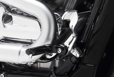 Mit den vorverlegten Fußrasten der V-Rod Muscle können Sie sich beim ultimativen Cruising durch die Stadt oder über Land in einer komfortablen Sitzposition entspannen. Genießen Sie Straßen, die sich bis zum Horizont winden – auf einer Maschine, die so ist wie keine andere.