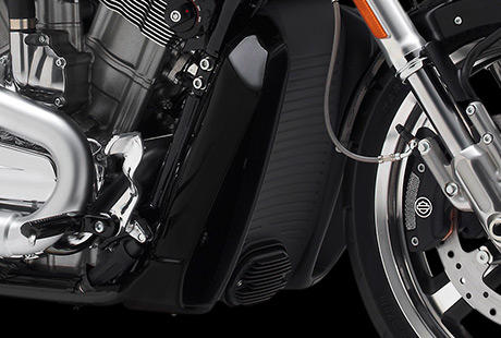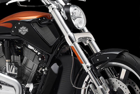 Jeder Zoll einer Harley-Davidson ist perfekt auf Look und Performance der Maschine abgestimmt, und die V-Rod Muscle bildet da keine Ausnahme. Auch der Kühler ist perfekt in das ästhetische Gesamtdesign integriert.