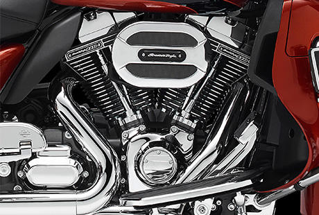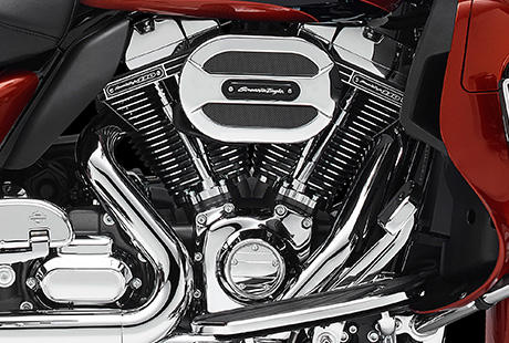 Das Juwel im Zentrum der CVO Road Glide Ultra ist der schwarz pulverbeschichtete Twin Cam 110™ Motor mit verchromten Deckeln. Das ist etwas fürs Auge. Und mehr als das: Er hat auch ordentlich Dampf.