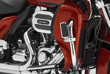 Die CVO Road Glide Ultra zeichnet sich durch zahlreiches Zubehör der Airflow-Kollektion aus: Trittbretteinsätze für Fahrer und Beifahrer, Schalt- und Bremspedal mit Abdeckung, Highway-Fußrasten, beheizte Handgriffe mit Gummieinsätzen und Schalthebelarme. Sie wollen mehr? Mit der CVO Road Glide Ultra bekommen Sie genau das.