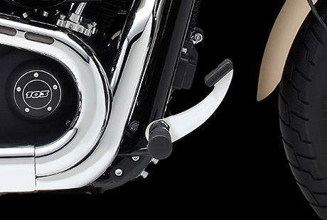 Mit den vorverlegten Fußrasten der Harley-Davidson Fat Bob können Sie sich beim ultimativen Cruising durch die Stadt oder über Land in einer komfortablen Sitzposition entspannen. Genießen Sie Straßen, die sich bis zum Horizont winden – auf einer Maschine, die so ist wie keine andere.