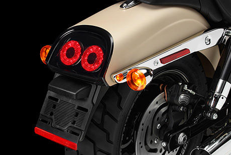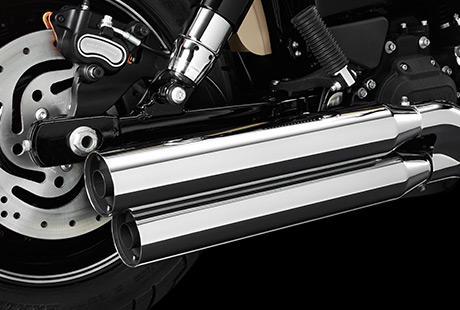 Einfach teuflisch gut, diese Details! Dieser Blunt-Cut Auspuff rundet die aggressive Linienführung des Heckfenders, der schwarzen Federbeinabdeckungen und der Tank-Grafiken ab. Liebe zum Detail, die Sie nur bei Harley-Davidson® finden.