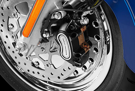 Bei der Fat Boy sind die ABS-Komponenten so dezent in der Radnabe versteckt, dass das klare, unverfälschte Design Ihrer Maschine nach wie vor alle Blicke auf sich zieht. Was aber noch viel wichtiger ist: Sie können sich darauf verlassen, dass Ihr Bike Ihnen jederzeit gehorcht, wenn es sein muss.