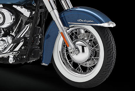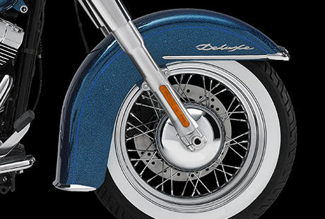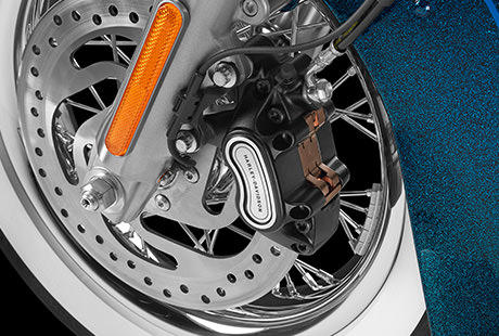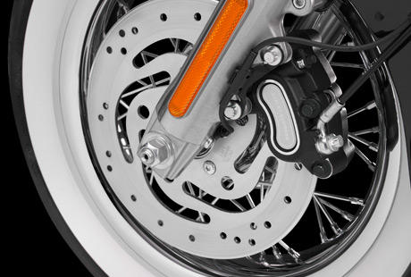Bei der Heritage Softail Deluxe haben wir die ABS-Komponenten so dezent in der Radnabe versteckt, dass das klare, unverfälschte Design Ihrer Maschine nach wie vor alle Blicke auf sich zieht. Was aber noch viel wichtiger ist: Sie können sich darauf verlassen, dass Ihr Bike Ihnen jederzeit gehorcht, wenn es sein muss.