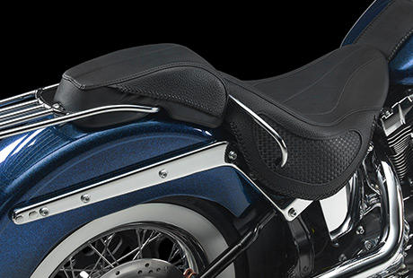 Auf diesem klassischen Softail Doppelsitz cruisen Sie stilvoll über den Boulevard. Einen tiefer angebrachten Sitz werden Sie schwerlich finden. Zu den ergonomischen Besonderheiten, die speziell Fahrer ohne Gardemaß schätzen werden, zählen die im vorderen Bereich abgeschrägten Sitzflanken, die dafür sorgen, dass Sie stets mühelos mit beiden Füßen den Boden erreichen. Der Soziussitz ist abnehmbar. Lassen Sie ihn für Solofahrten einfach zu Hause, oder nehmen Sie Ihre bessere Hälfte auf eine Spritztour.