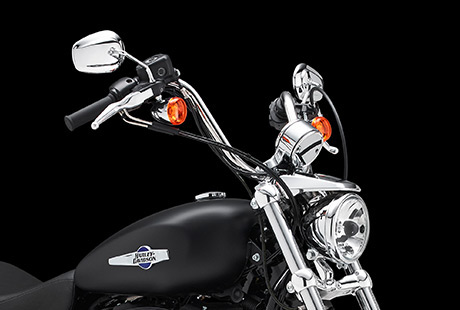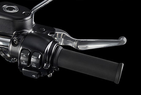 Wenn Sie den Lenker und die Lenkerarmaturen bequem ergreifen können, fühlen Sie sich auf Ihrem Motorrad wohl. Und das ist gerade dann der Fall, wenn Sie am Gasgriff einer Harley-Davidson drehen. Es fühlt sich gut an, und es ist komfortabel. Sie sind mit sich, Ihrem Bike und der Straße im Einklang. Bei der Entwicklung der neuen Lenkerarmaturen haben wir keine Mühen gescheut, um die Bedienung so intuitiv, sanft und reibungslos wie möglich zu gestalten. Damit Sie sich auf das konzentrieren können, was Sie hinter der nächsten Kurve erwartet und nicht auf das, was unter Ihren Daumen liegt. Dazu gehören Funktionen wie die elbstrückstellenden Blinker, und Bremshebel, die Sie mühelos ergreifen. Neu sind auch der Trip Switch und der Starter, denn 2014 wird die Zündung an allen Sportster Modellen schlüssellos aktiviert. Vermeintliche Details, die Ihnen unterwegs äußerst hilfreich sein werden, vermeintliche Details, für die Harley-Davidson bekannt ist.