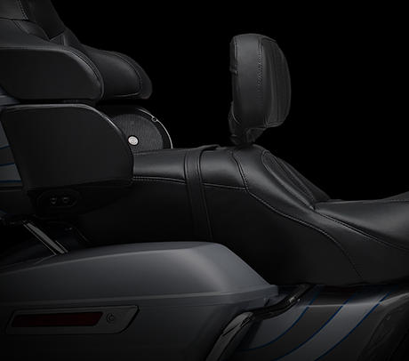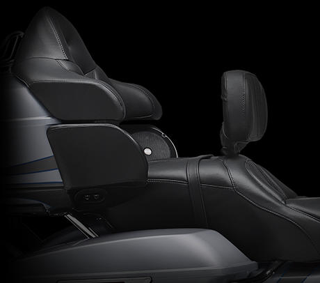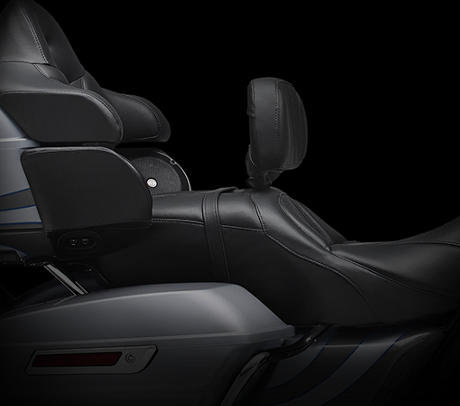 Müssen Sie noch jemanden davon überzeugen, dass Sie dieses Bike unbedingt brauchen – oder überreden, mit Ihnen gemeinsam auf Tour zu gehen? Dann werfen Sie mal einen Blick auf diesen verlängerten tief angeordneten Custom-Sitz mit doppelter Steuerung. Wir haben ihn mit einem ausgeklügelten System gefedert, damit Sie und Ihr Sozius Kilometer für Kilometer Komfort genießen! Die Soziusrückenlehne mit einstellbarer Lordosenstütze bietet Ihnen ein Höchstmaß an Bequemlichkeit, und bei kühlen Außentemperaturen aktivieren Sie einfach die Sitzheizung.