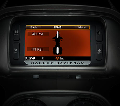 Der 6,5-Zoll-Touchscreen bietet sämtliche Informationen übersichtlicher als je zuvor. Darunter jetzt erstmals: Reifendruckkontrollsystem mit Anzeige im Display. Vorbei die Zeiten, in denen der Reifendruck umständlich an der Tankstelle kontrolliert werden musste. Heute genügt ein Blick aufs Display. Eine zusätzliche Warnleuchte erhöht die Sicherheit nochmals. Der 6,5-Zoll-Touchscreen bietet perfekte Darstellungsvarianten in unterschiedlichen Farben und die Wahl zwischen automatischer und manueller Helligkeitsregulierung. All das stilvoll in die Verkleidung integriert. Modernste Funktionalität im einzigartigen Harley-Davidson Design. Vielleicht haben Sie all das gar nicht erwartet, aber Sie sollten sich ab jetzt nicht mehr mit weniger zufrieden geben.