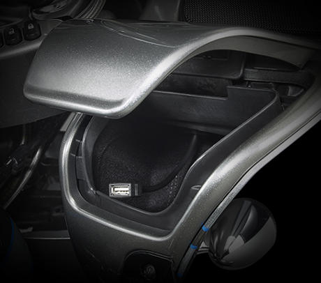 Auf Knopfdruck öffnet sich die Jukebox mit einem USB-Anschluss für iPhone, iTouch und andere Musik-Player, SD-Karten sowie weitere USB-kompatible Geräte. Öffnen Sie die Jukebox, schließen Sie ihr Gerät an, und es wird Teil Ihres Motorrads. Es lässt sich manuell oder über Sprachbefehle bedienen.
