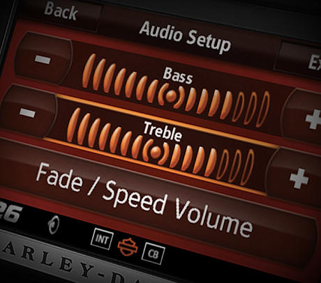 Das Boom! Box 6.5GT Audiosystem leistet bei einem Klirrfaktor von 1 Prozent satte 75 Watt pro Kanal. Zudem ist es mit einem perfekt auf die Hörumgebung auf einem Bike abgestimmten Equalizer ausgestattet, damit Sie Ihre Lieblingstracks exakt so wahrnehmen, wie Sie sie schätzen. Das Speed-Tuning-System bietet mehr als eine bloße Lautstärkeanpassung an die unterschiedlichen Geschwindigkeiten: Es passt auch die Bass- und Höhenwiedergabe an das Tempo an, sodass Sie stets einen optimalen Klang genießen - ob Sie gemächlich dahin rollen oder Ihrer Maschine die Sporen geben. Wie gefällt Ihnen der Sound Ihrer Harley?