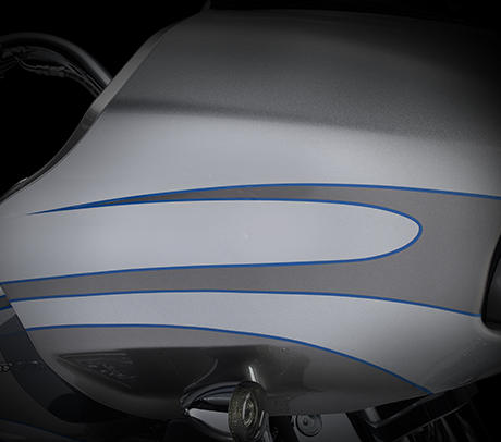 Zum unverwechselbare Stil der Harley-Davidson CVO Road Glide Ultra gehört nicht zuletzt, dass sie reichlich Flächen für eine begeisternde Sonderlackierung bietet. Der klassisch geformte, markante Tank bietet nicht nur mehr Fläche für die hochwertige Custom Lackierung, sondern fasst auch 22,7 Liter Benzin für ausgedehnte Touren ohne Tankstopp. Ein geringer Verbrauch ist wichtig. Aber Stil eben auch. Frische, auffallende Farben und präzisionsgefertigte Harley-Davidson® Tankmedaillons runden den einzigartigen Look dieses robusten Tourers ab.