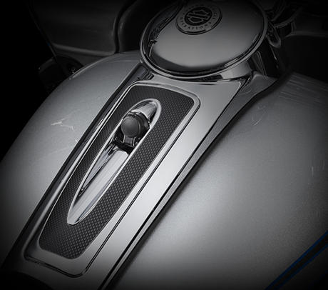 Bei jedem Fach und dem Tankdeckel hielt Harley-Davidson sich eine Regel vor Augen: Was sich nicht auf einen einzigen Knopfdruck oder mit einer im Handschuh steckenden Hand öffnen lässt, hat nichts an unseren Motorrädern verloren. Während der grundlegenden Überarbeitung dieser Bikes waren sich sämtliche Motorradfahrer, mit denen Harley-Davidson über Reisen sprach, in einem Punkt einig: Niemand will auch nur vorübergehend etwas auf dem Boden abstellen, bevor es in einen Koffer gepackt werden kann.