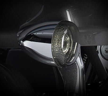 Die Bullet-Blinker im klassischen Harley Look zeichnen sich durch modernste LED-Leuchtelemente aus - perfekt passend zum Rücklicht der CVO™ Road Glide® Ultra. Bereits auf dem Seitenständer macht das Bullet-Design einiges her. Aber beim Abbiegen fallen die kräftigen LED-Leuchten erst recht ins Auge. So stellen wir sicher, dass Sie etwas sehen und gesehen werden.