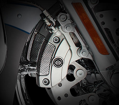 Vertrauen ist gut, Kontrolle ist besser. Brembo® Hochleistungs-Doppelscheibenbremsen vorn sorgen für eine exakt dosierbare Verzögerung, die Vertrauen schafft und die perfekte Kontrolle über das Bike gewährleistet. Die Vierkolben-Bremssättel vorn und hinten zählen zum Besten, was auf dem Markt zu haben ist. Ein weiteres Beispiel für die Sorgfalt der Motor Company, die sich bis ins Detail erstreckt, um Ihnen eine sorgenfreie Fahrt zu sichern.