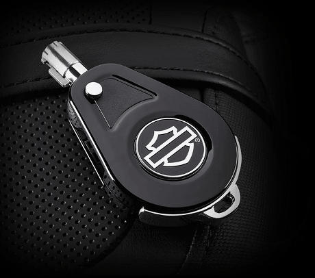Die praktische schlüssellose Zündung und die serienmäßige Alarmanlage werden automatisch aktiviert und deaktiviert. Sie gehören an der CVO™ Pro Street Breakout® zur Serienausstattung. Sobald Sie sich mit Ihrem Schlüsselanhänger Ihrem Motorrad nähern oder sich entfernen, übernimmt das System die Arbeit für Sie.