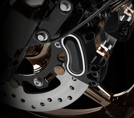 Die CVO™ Pro Street Breakout® ist mit einer leistungsstarken Doppelscheibenbremse vorn ausgestattet. Ein untrügliches Zeichen für das Rennsport-Erbe und ein elementarer Charakterzug dieser Maschine. Dank der reduzierten Griffweite des Bremshebels haben Sie die immense Verzögerungsleistung immer zur Hand.