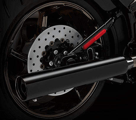 Der Screamin’ Eagle® Twin Cam 110B™ Motor entlässt sein Grollen über eine schwarze Staggered 2-in2-Auspuffanlage mit Blunt Cut Schalldämpfern. Auch mit geschlossenen Augen ist dieses Bike unverkennbar.