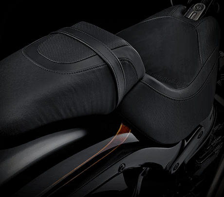 Der Sitz der CVO Pro Street Breakout stammt direkt vom Drag Strip. Sie sitzen tief in der Maschine und haben alles unter Kontrolle. Das Custom Harley-Davidson® CVO™ Emblem setzt dem Ganzen die Krone auf.