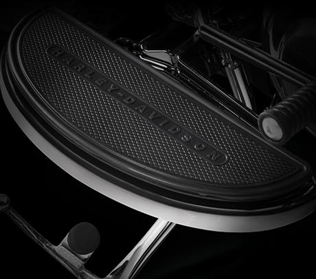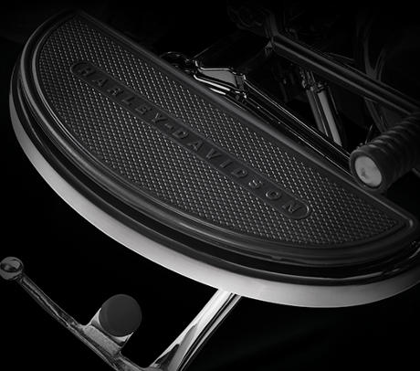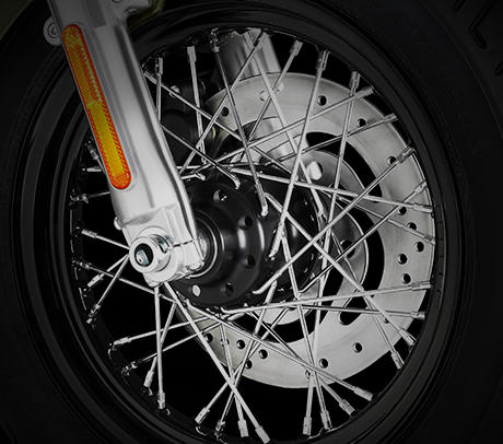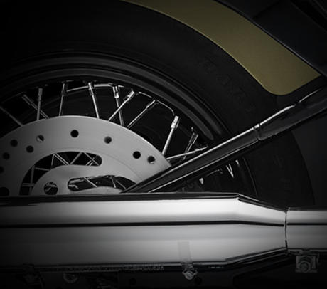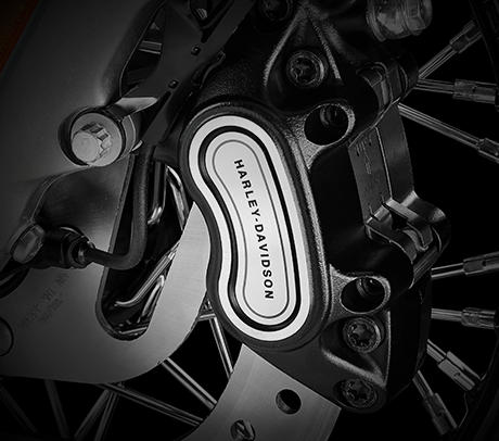 Am Handbremshebel der Softail® Modelle sind besonders geringe Handkräfte erforderlich. Zugleich punktet die Bremse mit perfekter Dosierbarkeit und hervorragendem Ansprechverhalten. Dafür bürgen der Hauptbremszylinder mit besonders großem Kolbendurchmesser, der steif ausgelegte Vierkolbenbremssattel mit 34 und 32 mm großen, speziell beschichteten Kolben und die 300 mm große Bremsscheibe am Vorderrad.
