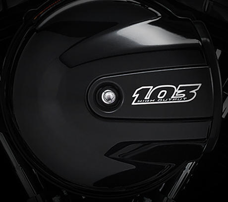 Genießen Sie den unverwechselbaren Look des High Output Twin Cam 103B™ Motors, der an seiner Herkunft keine Zweifel aufkommen lässt. Er ist voll und ganz im echten Harley-Davidson Stil gestaltet – mit einer Liebe zum Detail, die Sie bei anderen Marken vergeblich suchen werden. Der graue Motorblock und die schwarzen, pulverbeschichteten Zylinderköpfe und Zylinder bilden einen prägnanten Kontrast zu den polierten Ventildeckeln und dem runde Old School Luftfilterdeckel. Ein aus Metall gefertigtes Juwel: pur und vor Kraft strotzend. Von der klassischen Linie seiner Kühlrippen bis hin zu den klaren Konturen seiner Gehäuse und Deckel ist der High Output Twin Cam 103B™ ein rückhaltloses Bekenntnis zu allem, was die Zufriedenheit des Fahrers ausmacht.