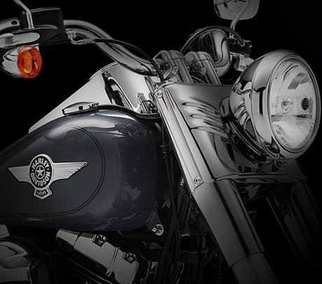 Fetter ist besser. Die Harley-Davidson Fat Boy® rollt auf einem 140er Dunlop Vorderreifen und einem breiten 200er Dunlop D407 am Heck. Die Reifen bieten eine äußerst gelungene Synthese aus Handling, Komfort und Grip – auch wenn Sie mal scharf bremsen müssen. Der gute Name Dunlop® bürgt eben für Qualität.