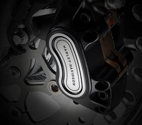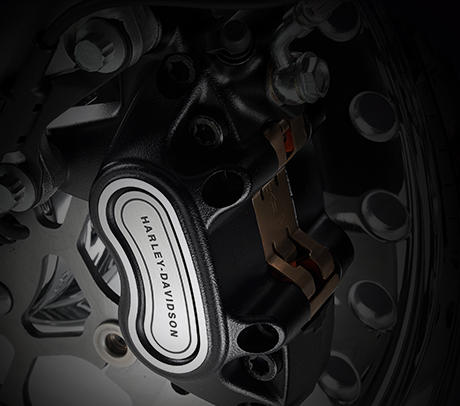 Am Handbremshebel der Softail® Modelle sind besonders geringe Handkräfte erforderlich. Zugleich punktet die Bremse mit perfekter Dosierbarkeit und hervorragendem Ansprechverhalten. Dafür bürgen der Hauptbremszylinder mit besonders großem Kolbendurchmesser, der steif ausgelegte Vierkolbenbremssattel mit 34 und 32 mm großen, speziell beschichteten Kolben und die 300 mm große Bremsscheibe am Vorderrad.