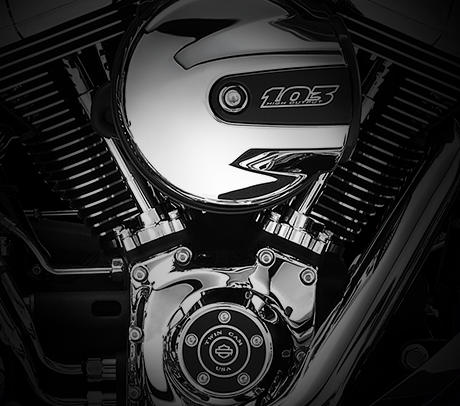 Genießen Sie den unverwechselbaren Look des High Output Twin Cam 103B™ Motors, der an seiner Herkunft keine Zweifel aufkommen lässt. Er ist voll und ganz im echten Harley-Davidson® Stil gestaltet – mit einer Liebe zum Detail, die Sie bei anderen Marken vergeblich suchen werden. Die schwarzen, pulverbeschichteten Zylinderköpfe und Zylinder bilden einen prägnanten Kontrast zu den polierten Kühlrippenkanten und verchromten Ventildeckeln. Ein aus Metall gefertigtes Juwel: pur und vor Kraft strotzend. Von der klassischen Linie seiner Kühlrippen bis hin zu den klaren Konturen seiner Gehäuse und Deckel ist der High Output Twin Cam 103B™ ein rückhaltloses Bekenntnis zu allem, was die Zufriedenheit des Fahrers ausmacht.