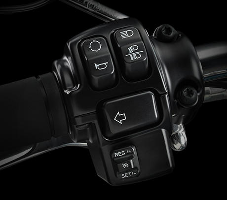 Der minimalistische Stil der Softail® Deluxe wird noch schlichter mit dem serienmäßigen elektronischen Gasgriff. Werfen Sie einen Blick darauf. Kein Kabelgewirr am Lenker. Die Geschwindigkeitsregelanlage gehört auch dazu, serienmäßig. Die Schalter liegen in bequemer Griffweite, damit sich die Geschwindigkeit leicht mit dem linken Daumen einstellen lässt. Das ist alles, was es braucht, um Ihrem Handgelenk ein Pause zu verschaffen, während Sie unzählige Kilometer abspulen.