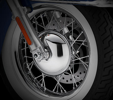 Eines der Stilmerkmale der Softail® Deluxe sind die nostalgischen Weißwandreifen mit den Premium-Speichenrädern. Eine Verbeugung vor dem Boulevard-Look der 50er Jahre. Diese fetten Reifen sind ein Blickfang von Harley-Davidson, der in jedem Umfeld den Einsatz erhöht. Absolut Old School ohne Abstriche bei Handling oder Performance.