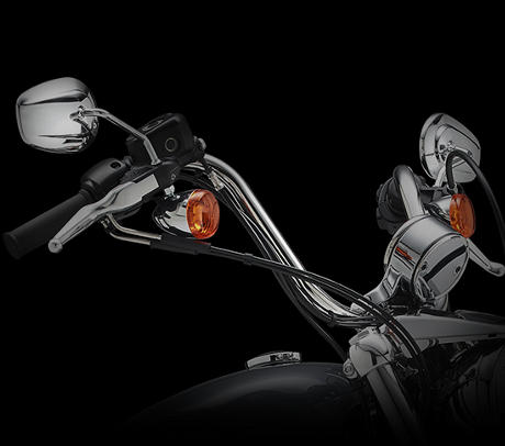 Ergreifen Sie den Mini-Apehanger-Lenker aus Edelstahl und strecken Sie Ihre Fäuste in den Wind – er versetzt Sie zurück in die glorreichen Jahre des Chopper-Cruisings. Um den Look clean zu halten, wurden die Kabel im Lenker verlegt.