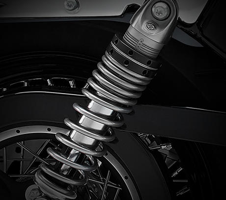Seit die erste Sportster® 1957 das Werk in Milwaukee verlassen hat, ist die Straße ihr Revier. Ein kraftvoller Antritt und ein schnörkelloses Design sind das Rezept ihres Erfolgs. Dazu kommt von jeher ein leichtes Handling. Da ist es nur recht, der jüngsten Generation der Sportster Familie ein entscheidendes Plus an Fahrkomfort hinzuzufügen. Vorn minimiert eine massive Gabel mit Cartridge-Dämpfung und 39 Millimeter Standrohrdurchmesser die Verwindungen. Hinten verfügt sie über Gasdruck-Federbeine mit einstellbarer Federvorspannung. Sie bügeln Fahrbahnunebenheiten verlässlich weg und gestatten es, die Federung exakt einzustellen. Mit einem Dreh an der Einstellvorrichtung erreichen Sie exakt die benötigte Federvorspannung.