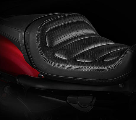 Die neue Doppelsitzbank der Roadster kombiniert optimal Komfort und Custom-Styling. Der attraktiv geformte Sitz gibt sicheren Halt beim Beschleunigen, und seine niedrige Sitzhöhe von 785 mm trägt zum niedrigen Schwerpunkt und leichtem Handling bei.
