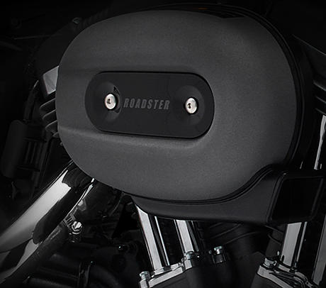 Die Luftfilterabdeckung der Roadster ist klassisch oval geformt und steht damit ganz in der Tradition der Sportster® Baureihe, deren Herz der V-Twin Motor ist. Ihre Lackierung ist auf das Finish des Motors abgestimmt, passt zum gerippten Timer-Cover und verleiht so dieser Maschine einen klassischen Street-Custom-Stil