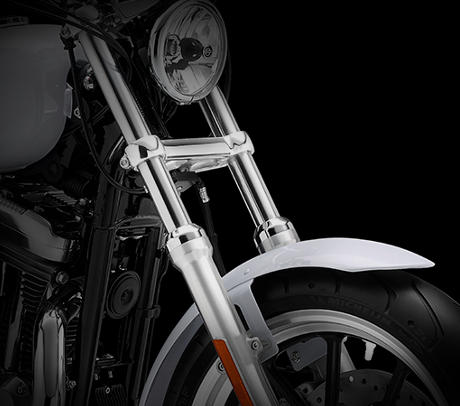 Seit die erste Sportster® 1957 das Werk in Milwaukee verließ, ist die Straße ihr Revier. Ein kraftvoller Antritt und ein schnörkelloses Design sind das Rezept ihres Erfolgs. Dazu kommt von jeher ein leichtes Handling. Da ist es nur recht, der jüngsten Generation der Sportster Familie ein entscheidendes Plus an Fahrkomfort hinzuzufügen. Vorn minimiert eine massive Gabel mit Cartridge-Dämpfung und 39 Millimeter Standrohrdurchmesser die Verwindungen. Hinten verfügt sie über Gasdruck-Federbeine mit einstellbarer Federvorspannung. Sie bügeln Fahrbahnunebenheiten verlässlich weg und gestatten es, die Federung exakt einzustellen. Mit einem Dreh an der Einstellvorrichtung erreichen Sie exakt die benötigte Federvorspannung.