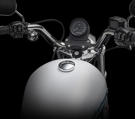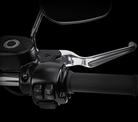 Wenn Sie den Lenker und die Lenkerarmaturen bequem ergreifen können, fühlen Sie sich auf Ihrem Motorrad wohl. Und das ist gerade dann der Fall, wenn Sie am Gasgriff einer Harley-Davidson drehen. Es fühlt sich gut an, und es ist komfortabel. Sie sind mit sich, Ihrem Bike und der Straße im Einklang. Bei der Entwicklung der neuen Lenkerarmaturen haben wir keine Mühen gescheut, um die Bedienung so intuitiv, sanft und reibungslos wie möglich zu gestalten. Damit Sie sich auf das konzentrieren können, was Sie hinter der nächsten Kurve erwartet und nicht auf das, was unter Ihren Daumen liegt. Dazu gehören Funktionen wie die selbstrückstellenden Blinker, und Bremshebel, die Sie mühelos ergreifen. Neu sind auch der Trip Switch und der Starter, denn die Zündung wird an allen Sportster Modellen schlüssellos aktiviert. Vermeintliche Details, die Ihnen unterwegs äußerst hilfreich sein werden, vermeintliche Details, für die Harley-Davidson bekannt ist.