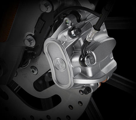Mindestens so hoch wie Ihre Ansprüche an den Motor sollten Ihre Ansprüche an die Bremsen ihrer Maschine sein. Daher wurde für dieses Modelljahr das Bremssystem der Sportster Modellfamilie umfassend überarbeitet. Wir erhöhten den Durchmesser der Bremsscheiben von 292 mm auf 300 mm und brachten einen kraftvollen Vorderradbremssattel mit 34-mm-Kolben sowie die dazu passende Bremszange am Hinterrad an. Für beide Räder kommen außerdem optimierte und äußerst effiziente Leichtmetall-Hauptbremszylinder zum Einsatz, und die Bremsleitungen sind nun mit Edelstahl ummantelt. Schließlich wollen wir, dass Sie Ihr Bike in allen Situationen so sicher wie mühelos verzögern können.