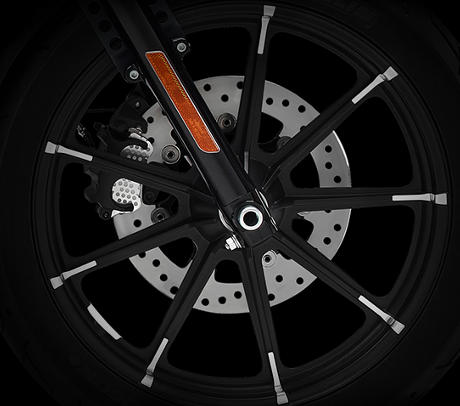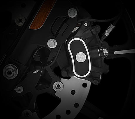 Mindestens so hoch wie Ihre Ansprüche an den Motor sollten Ihre Ansprüche an die Bremsen ihrer Maschine sein. Daher haben wir für das Modelljahr das Bremssystem der Sportster Modellfamilie umfassend überarbeitet. Wir erhöhten den Durchmesser der Bremsscheiben von 292 mm auf 300 mm und brachten einen kraftvollen Vorderradbremssattel mit 34-mm-Kolben sowie die dazu passende Bremszange am Hinterrad an. Für beide Räder kommen außerdem optimierte und äußerst effiziente Leichtmetall-Hauptbremszylinder zum Einsatz, und die Bremsleitungen sind nun mit Edelstahl ummantelt. Schließlich wollen wir, dass Sie Ihr Bike in allen Situationen so sicher wie mühelos verzögern können.