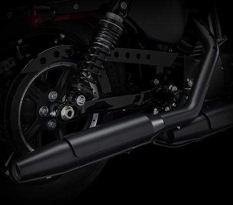 Minimalistisch, pur und düster: Die Iron 883™ ist eine Maschine, die nahezu ohne Chrom auskommt – ein Bike, das seinen Minimalismus offensiv zur Schau trägt: ein schwarz pulverbeschichteter Motor mit 883 cm³ und schwarzen Ventildeckeln. Ein schwarzer, runder Luftfilterdeckel. Schwarze, gechoppte Fender, die den Blick auf die Reifen frei geben. Eine schwarze Gabel mit Faltenbälgen. Eine schwarze Öltank- und Riemenabdeckung sowie ein schwarzer Drag Bar Lenker. Last but not least schwarze Speichen-Aluminiumgussräder. All das verleiht der Iron 883™ einen besonders rebellischen Charme – und lässt Raum für Ihr ganz individuelles Customizing.