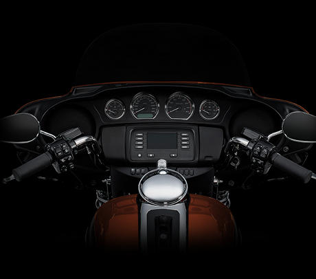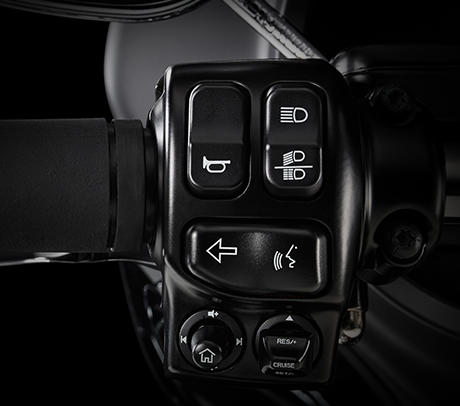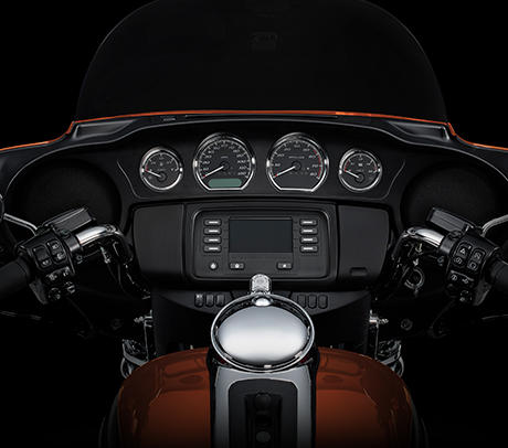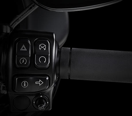 Es ist schwer, die Fahrt zu genießen und sich auf den Verkehr zu konzentrieren, wenn die Schalter am Lenker umständlich zu bedienen sind. Deshalb hat Harley-Davidson den Lenkerarmaturen der neuen Touring Maschinen genauso viel Aufmerksamkeit geschenkt, wie dem Rest der Bikes. Sie sind nun ergonomischer gestaltet und exakt so positioniert und ausgerichtet, dass Sie perfekt unter Ihrem Daumen liegen. Harley-Davidson hat eine leicht aktivierbare Geschwindigkeitsregelanlage, griffgünstige Bedienelemente für die Infotainment Funktionen und einen leicht greifbaren Trigger zur Aktivierung der Displayanzeigen angebracht. Zudem wird jetzt jede Tastenaktivierung durch ein vertrauenseinflößendes, fühlbares Klicken bestätigt. Auch der Zündschalter wurde optimiert. Und die elektrische Anlage ist bereits auf das einfache Customizing mit weiterem elektrischen Parts and Accessories vorbereitet.